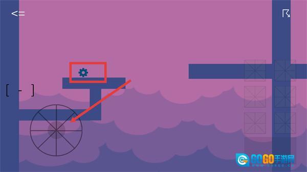 1、点击【齿轮】图标,操控下方【轮子】转动,推动蓝色方块移动至目标位置,解锁后续机关。