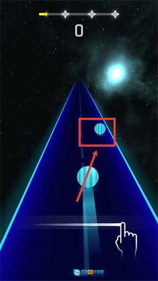 3、球体在跑道上的位置会随机变化,你需要用手指在屏幕上滑动,控制球体左右移动,使其与颜色相同的球体碰撞。