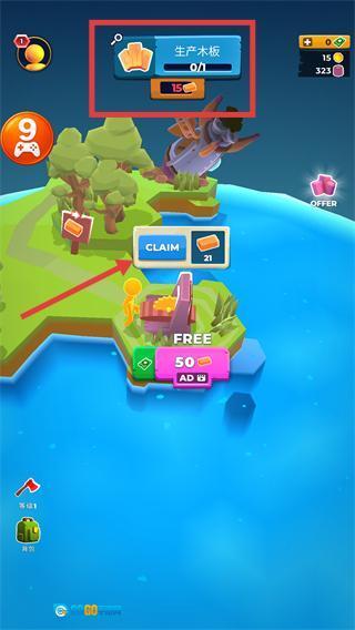 1、接取【生产木板-0/1】任务后,操控角色前往指定区域,完成任务后点击【CLAIM】领取奖励。