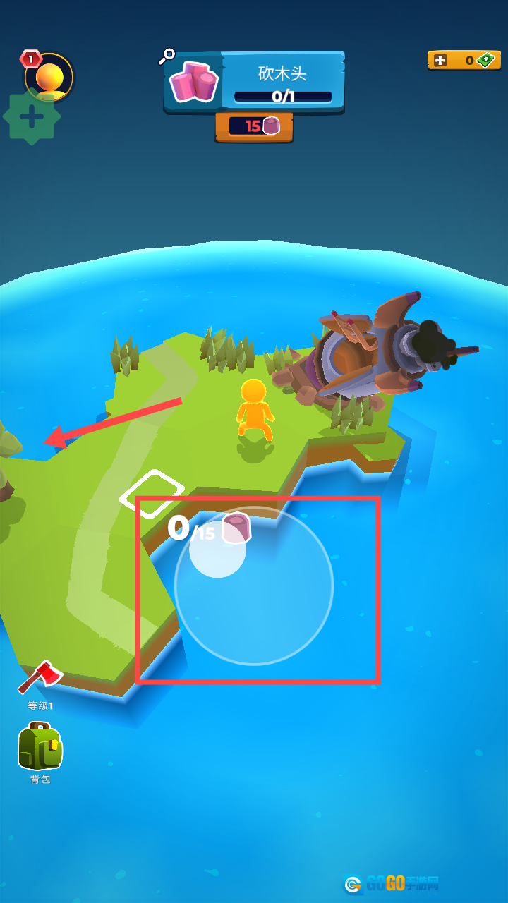 2、玩家移动到指定位置后,系统会自动触发砍树动作,待木材收集完毕,玩家再前往白框标注的位置移动即可。