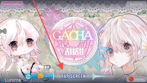1、在GACHA 甜甜游戏的主界面,点击【TAP SCREEN】按钮,即可进入游戏功能选择界面。