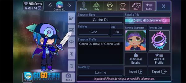 3、进入【个人资料】界面,填写【姓名】【生日】等信息,完善角色的背景设定。