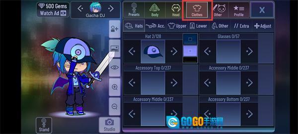 1、在【Clothes】标签页中找到【Hat】类装饰,点击将其应用到角色头部,以此打造专属的头部造型。