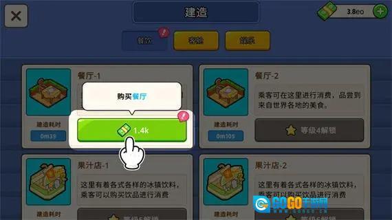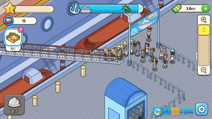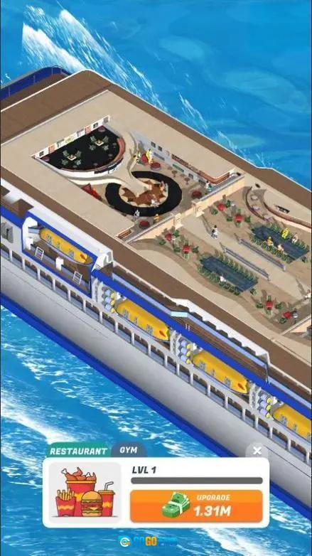 - 设施采购:点击空白处即可建造并升级各类游轮设施,像餐厅、客舱之类的都可以。