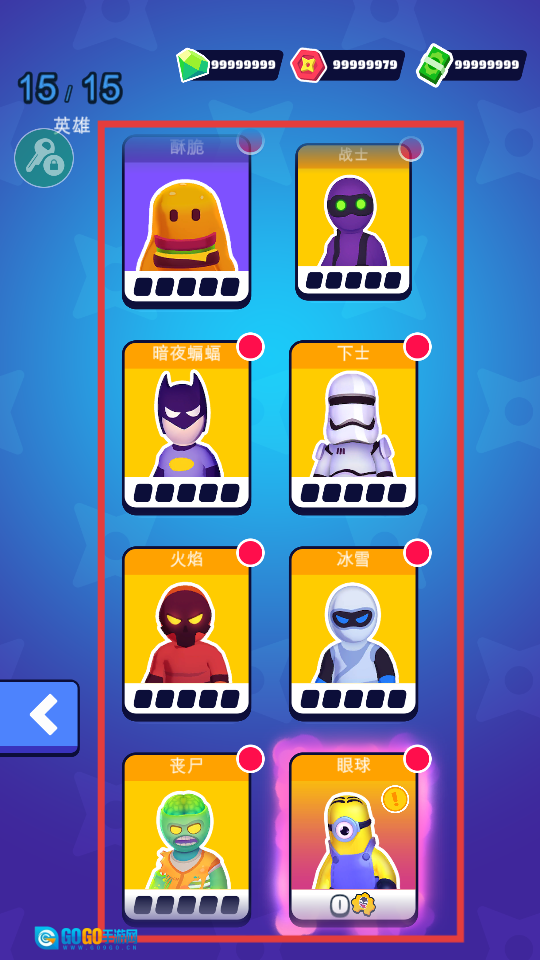 2、挑选红框里已解锁的【酥脆】【战士】【暗夜蝙蝠】这类英雄皮肤,更换角色外观后,就可以开始游戏了。