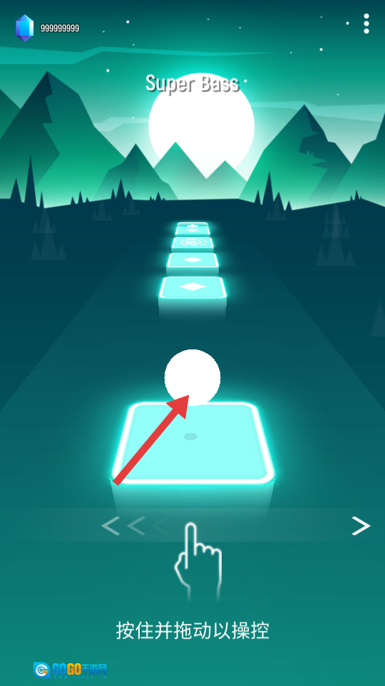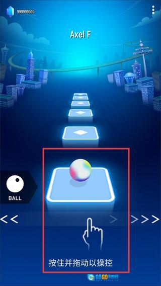 2、按住屏幕并拖动,操控小球向前移动,跟随音乐节奏行进。
