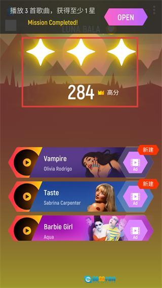 完成关卡后挑选合适的歌曲,通过积累高分来解锁三星评价,借助任务可以获得更多游戏奖励和权限。