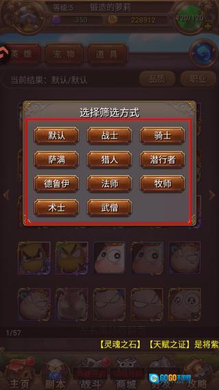 4、还可利用【默认-战士-骑士-萨满-猎人-潜行者-德鲁伊-法师-牧师-术士-武僧】的职业筛选功能,精准找到所需的英雄类型。