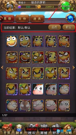 2、切换至【英雄-宠物-道具】中的【英雄】标签页,就能查看所有英雄角色,方便筛选目标来进行编队或培养。