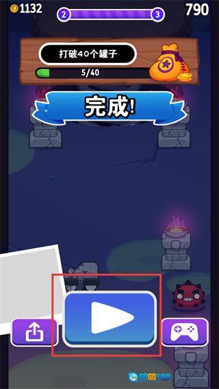 4、关卡结束后,点击蓝色播放按钮,重新进入挑战。