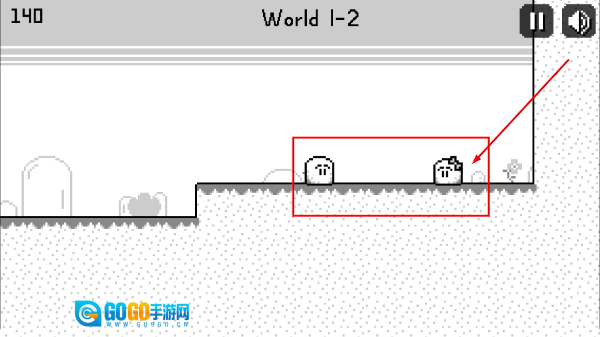 1、在【World1-2】场景中,点击角色跳跃平台,为后续操作铺垫。