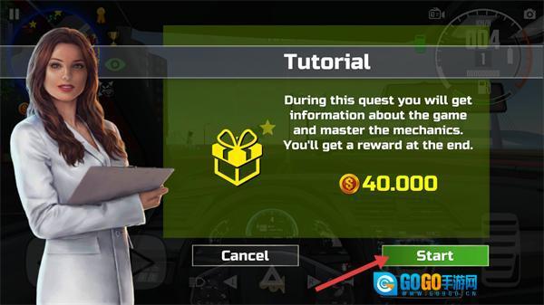 2、触发【Tutorial】任务提示后,点击【Start】按钮开启教程,完成后可获得【$40.000】的奖励。