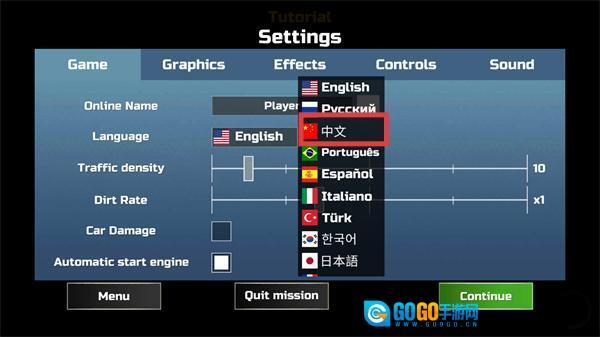 3、进入【Settings】界面,在【Language】选项中选择【中文】,将游戏语言切换为中文便于操作。