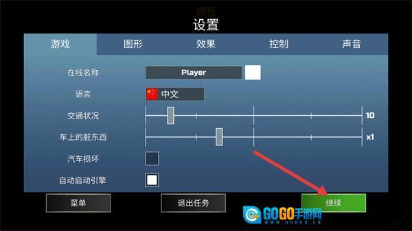 4、语言切换完成后,点击【继续】按钮保存设置,返回游戏场景继续推进教程流程。