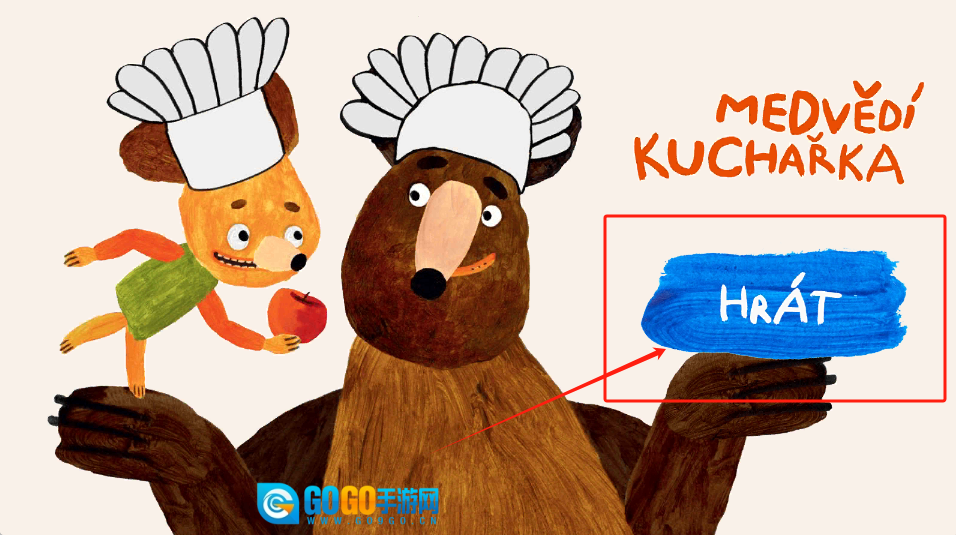1、点击HRAT启动游戏,画面中熊厨师正托着小狐狸,打算制作苹果料理。