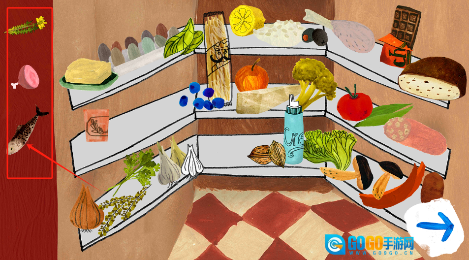 2、冰箱里存放着不少食材,点击食材即可用于烹饪菜肴,烹饪时需留意食材的新鲜程度。