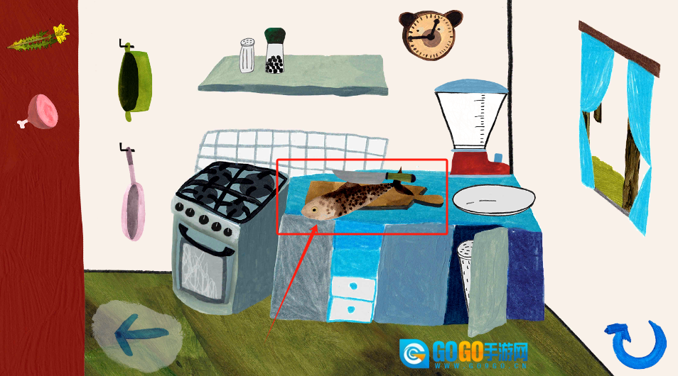 3、使用炉灶与搅拌机烹饪菜肴,案板上摆放着鱼,点击右下角的刷新按钮可以更换食材。