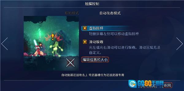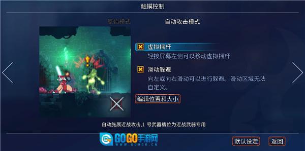 滑动躲避机制:快速向左或向右滑动屏幕,即可触发“翻滚”动作,无需点击“翻滚图标”;自动攻击模式:当敌人进入武器栏1武器的攻击范围时,系统会自动使用该武器发起攻击;在此模式下,武器栏1的图标将隐藏,同时游戏整体速度会略微降低,以此实现难度下调。