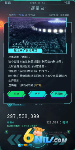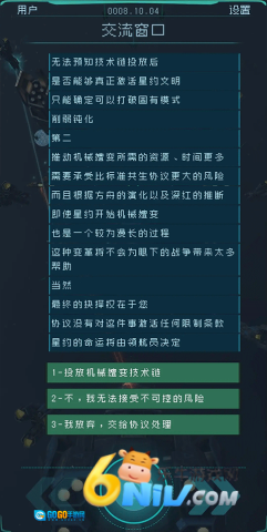 2、在第三星的对话框里,需对是否干预共联网络革命做出抉择,可选择给予他们一次机会,或是在无威胁的状况下不进行干预,与此同时要把对翡翠文明的损害控制在最低程度。完成共生后,你会目睹到积极的转变。
