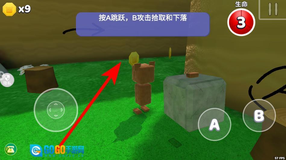 2、接下来是收集物品的环节,当在场景里看到金币、红心这类物品时,靠近它们就能将其获取;其中金币可用于后续的兑换等用途,红心则能够增加生命的数量。
