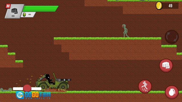 。玩家们将会扮演一名英勇无比的火柴人战士,勇闯复杂无比的地形,迎战不断出现的各种僵尸敌人,利用拳头或者是拾取的武器来战斗,将一切邪恶的僵尸全部消灭!不止如此,还可以在商店中购买并升级自己的武器,提升整体的战斗,助你更加畅快的去战斗!