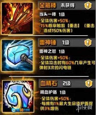 1、“金箍棒”、“血精石”、“雷神锤”组合: