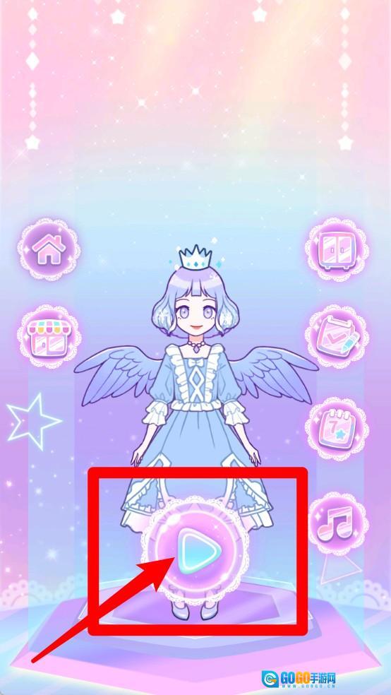 1. 开启展示功能:点击中间的播放按钮就能进入展示模式,角色会在华丽的舞台上呈现出完整造型,为你正式开启时尚展示的全新体验。