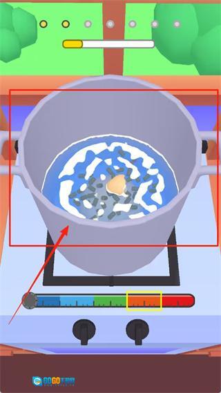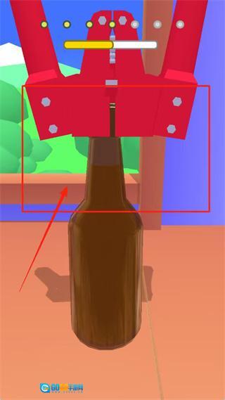 4、用红色开瓶器夹住棕色啤酒瓶,待五个小圆点里有三个亮起就行,白色条的左侧设有黄色进度条。