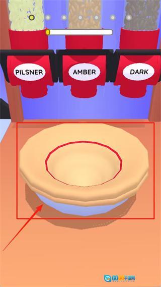 1、点击中间的三个啤酒类型选择其一:PILSNER(浅绿色)、AMBER(浅棕色)、DARK(深棕色),再点击黄色圆点确认所选类型。