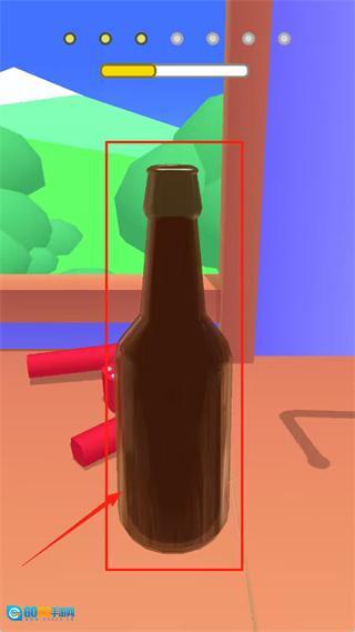 3、点击被红色框选中的棕色啤酒瓶,此时窗外是蓝天绿山的背景,而其上方的黄色进度条上有两个黄点。