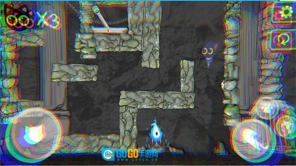 1. 借助虚拟按键操控猫咪完成移动、跳跃与互动动作,巧妙避开各类致命陷阱以及冥界守卫的追捕。