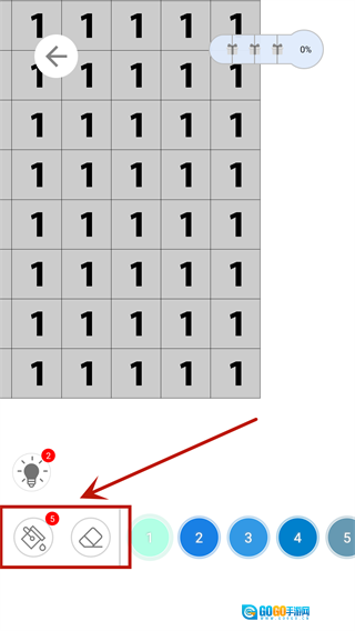 5、填色的方法也很简单,主要有填色和擦除两个按钮,只需依据方块上的数字选用指定颜色,然后在对应位置涂上色彩即可。