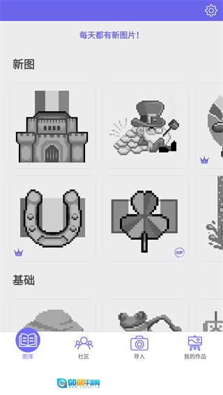 进入游戏后会默认进入图库界面,在这里能看到各类新图和基础图,只需点击任意一张想绘制的图片就行。