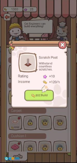 3、治愈系的画风构建出一个温暖又宁静的猫咪天地,再配上舒缓轻松的音乐,使得玩家在放置操作的过程中也能收获满满的疗愈感受。