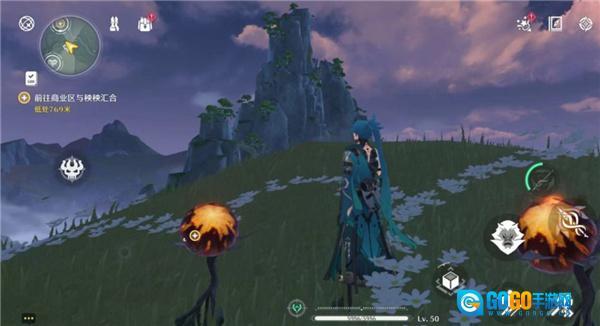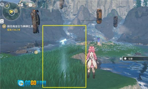 2、B位置描述(无明湾):地处最高的悬崖之上,目的地周边分布着不少炸弹草,观景点就位于悬崖边缘(B点归属于无明湾区域,由于场景一致,所以将其放置在虎口山脉处)。