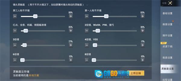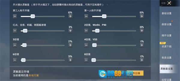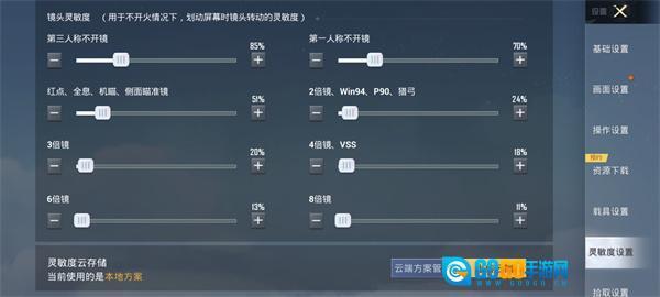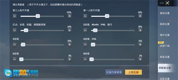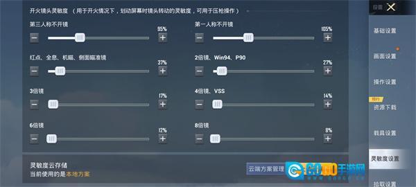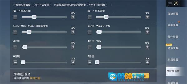 3、开火镜头灵敏度设置如下:第三人称视角不开镜时为85%;第一人称视角不开镜时为70%;红点瞄准镜、全息瞄准镜、机械瞄准镜以及侧面瞄准镜的灵敏度均为52%;2倍镜、win94、p90对应的灵敏度是24%;3倍镜为25%;4倍镜和vss的灵敏度为22%;6倍镜与8倍镜的灵敏度相同,均为11%。