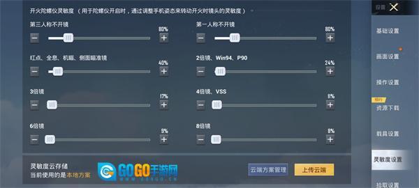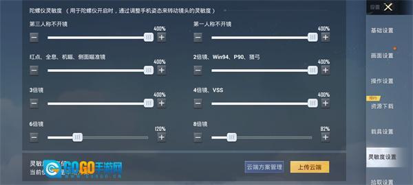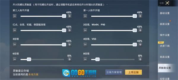5、开火陀螺仪灵敏度设置如下:第三人称不开镜状态下为400%;第一人称不开镜时同样是400%;红点瞄准镜、全息瞄准镜、机械瞄准以及侧面瞄准镜对应的数值均为400%;2倍镜、win94枪械、p90枪械的灵敏度设为400%;3倍镜的灵敏度是400%;4倍镜与vss枪械的灵敏度保持400%;6倍镜调整为80%;8倍镜则设置为60%。
