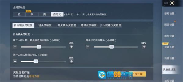 2、自由镜头灵敏度设置如下:第三人称角色及载具状态下的自由镜头(小眼睛)为120%;跳伞状态时的自由镜头(小眼睛)为120%;第一人称角色的自由镜头(小眼睛)为100%。