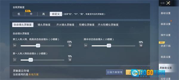1、自由镜头灵敏度设置:第三人称角色及载具状态下的自由镜头(小眼睛功能)为120%;跳伞过程中自由镜头(小眼睛功能)为118%;第一人称角色自由镜头(小眼睛功能)为70%