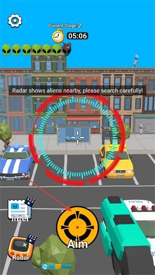 1、在场景里找出所有隐藏的外星人,使用武器进行狙击消灭它们,以此完成任务