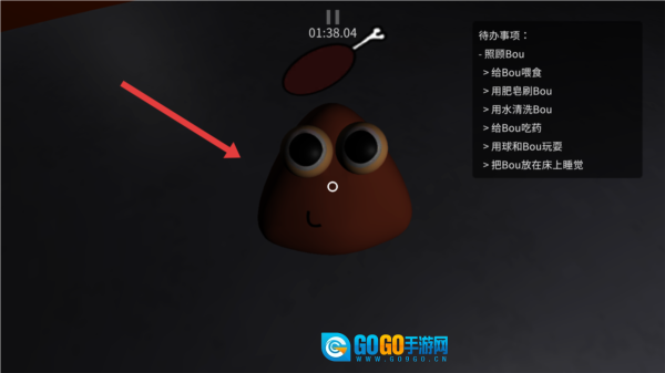 8、照顾Pou和Poulina:喂养环节:先去冰箱处,取出食物来喂Pou和Poulina(要先拿冰箱下格的食物,之后再拿冰箱上格的食物喂食)