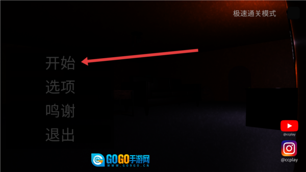 1、启动游戏后,左侧会出现一个菜单栏,点击“开始”选项即可进入密室场景。