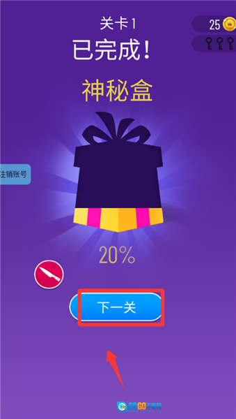 3、恭喜你过关了,点击红色框框里的下一关继续