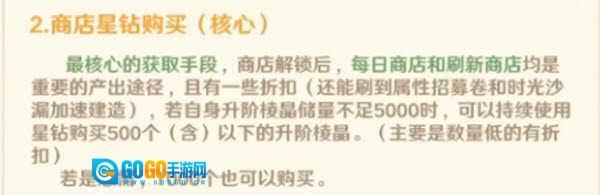 2、商店购买:每日商店与刷新商店是核心获取渠道之一,消耗星钻能够购买到大量升阶棱晶,部分商品还设有折扣福利。此外,商店中或许会刷出属性招募券、时光沙漏这类实用道具。要是自身的星钻储备低于5000,建议保持持续补充。