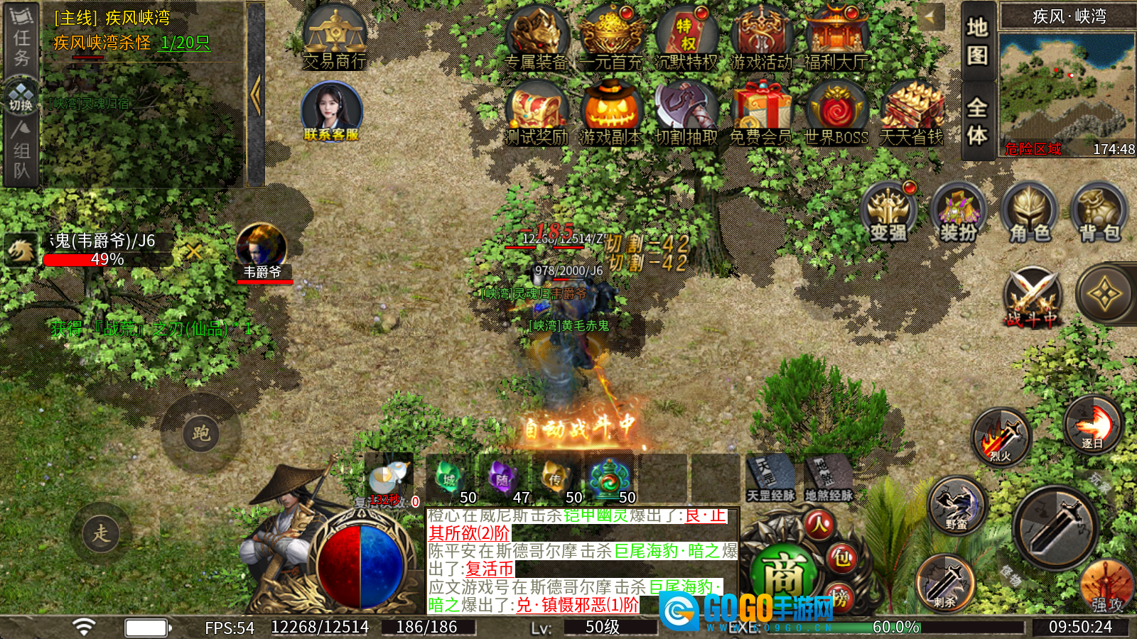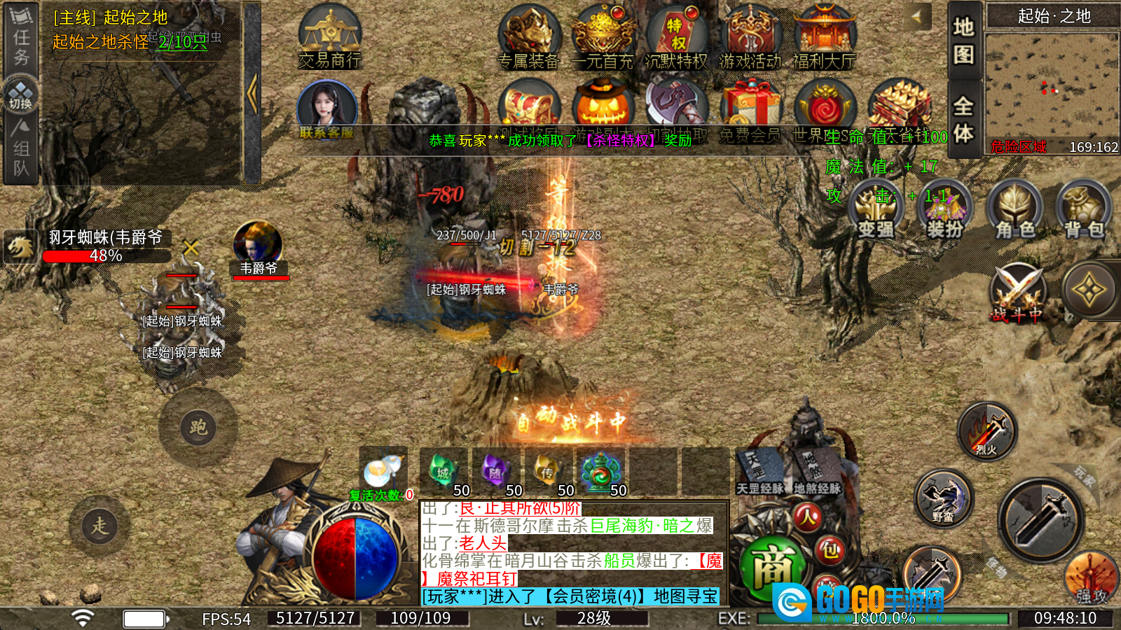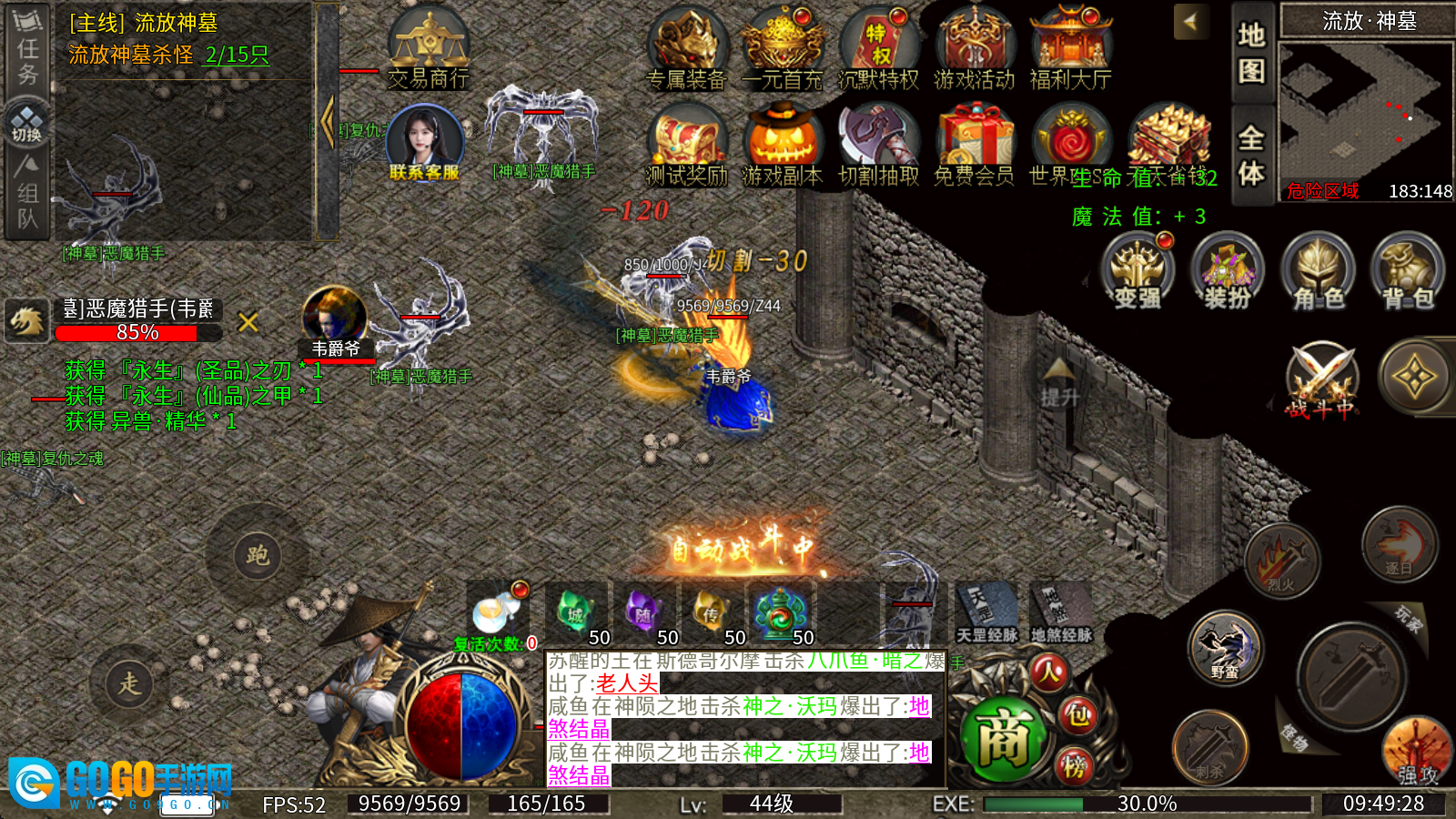3、上线就送自动挂机、自动回收、自动拾取功能,全面解放你的双手,让你只需挂机就能轻松打宝升级。