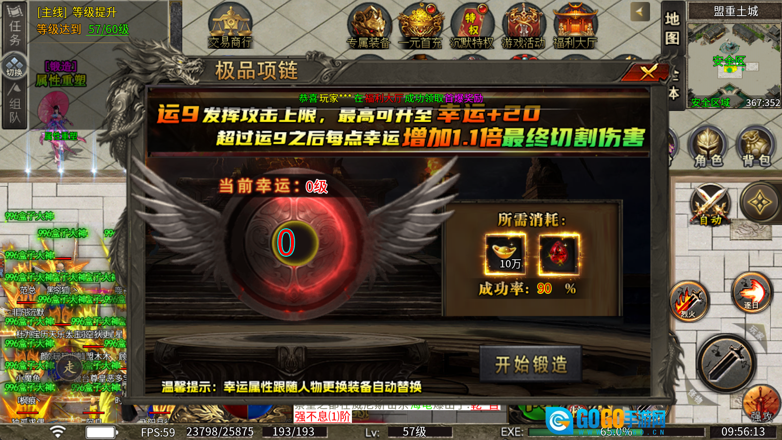 4、幸运锻造:通过消耗元宝与宇宙之灵来提升属性,当幸运值达到9时可触发攻击上限效果,该系统最高能将幸运值提升至+20。在幸运值突破9之后,每增加1点幸运,最终切割伤害将提升1.1倍。