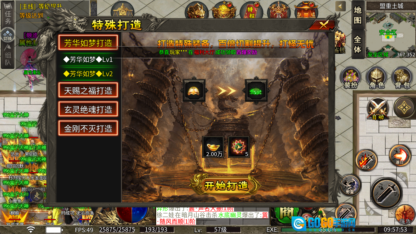 5、特殊打造:消耗元宝与太阳神石即可打造特殊装备,该装备可提供多维度的属性加成。