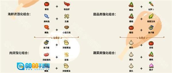 5、每种菜品根据其自身的风味以及品类,都有与之最适应的强化食材,这部分只能通过平时的日常积累自行摸索,这里只能罗列一些比较通用的以供参考