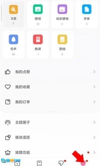 1、启动小米主题国际版应用后,点击界面右下角的【我的】按钮
