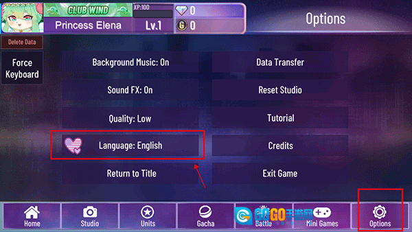 1、打开游戏内的设置界面(options),找到language选项。